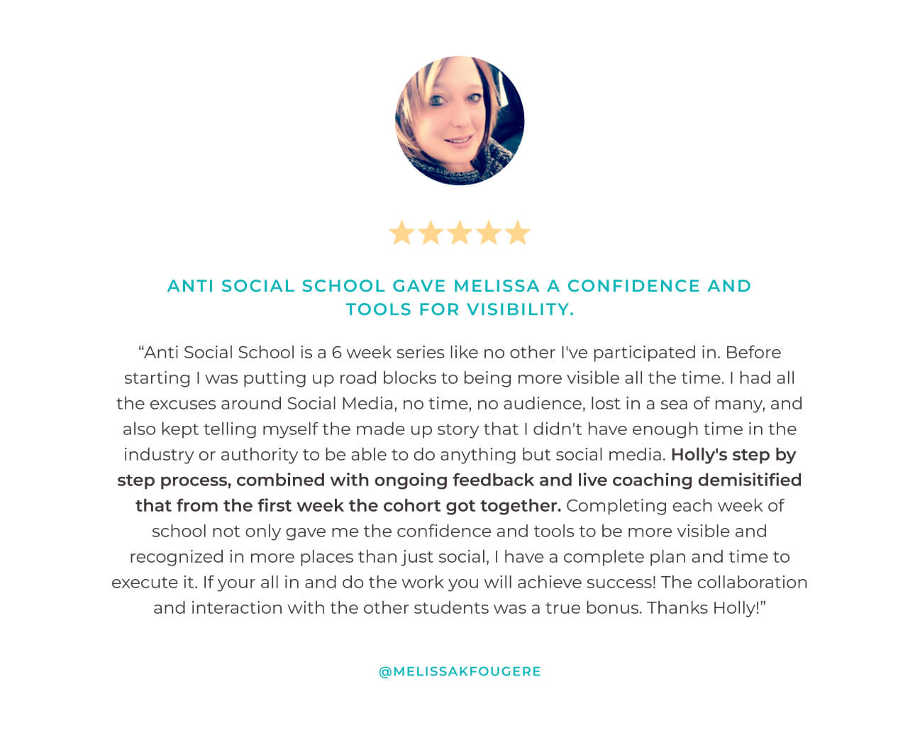 “Holly goes above and beyond in Anti-Social School™. If you follow her steps, you’ll start making your money back even before you finish this program!”