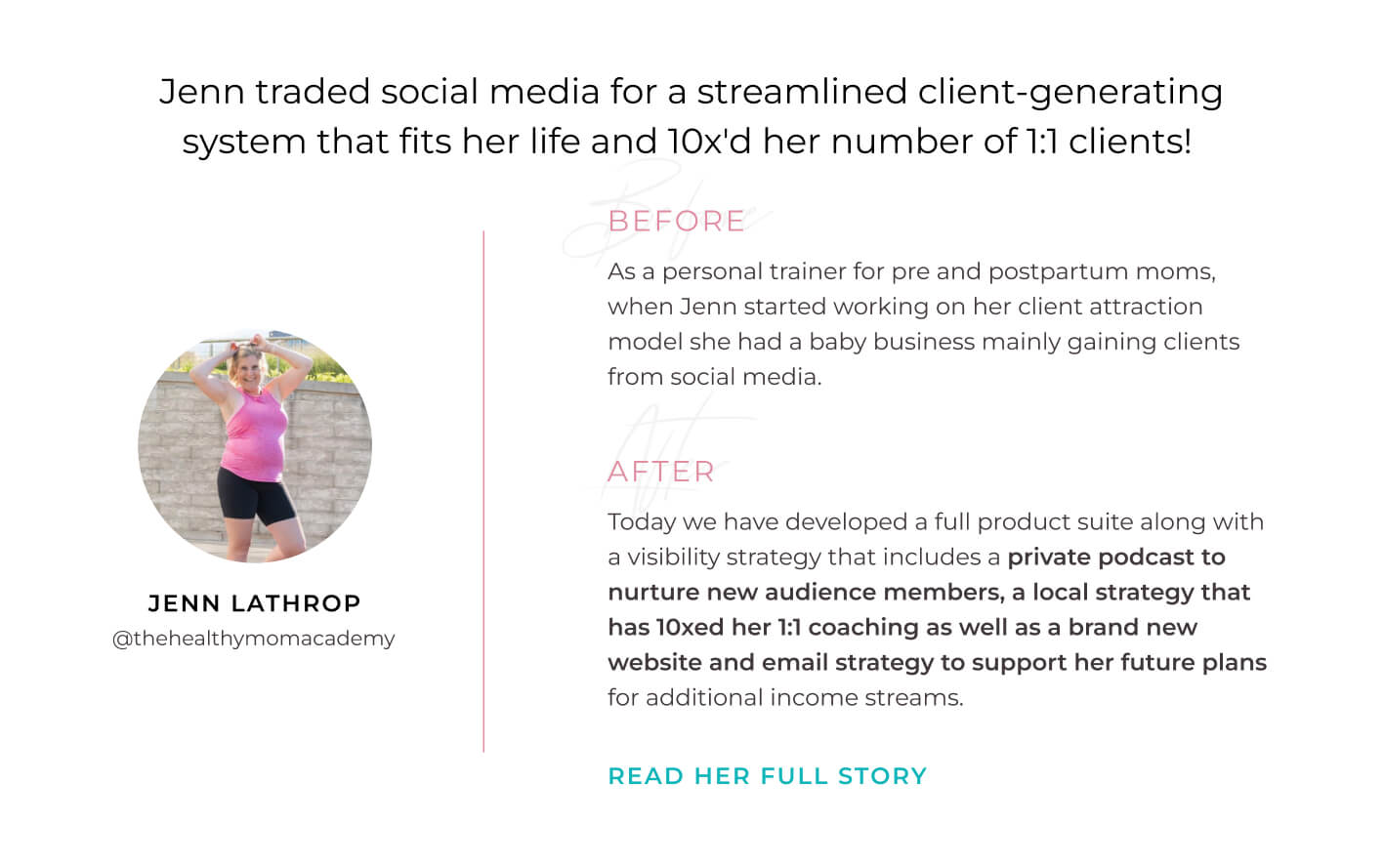 I’ve been able to leave my corporate job, retire my husband, and create the flexibility and freedom for my family I always wanted when I was at my 9-5.